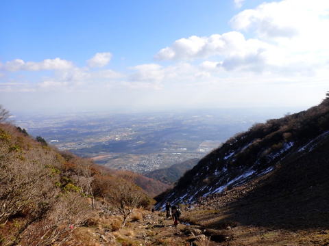 | 登りは井戸谷コースで。谷合を過ぎると、稜線まで延々と急な登り。振り返ると鈴鹿の市街や伊勢湾が美しい。山頂は風が強く寒いが、360度の絶景で心がなごむ。寒さに耐えながら昼食を短時間で済ますと、二本松コースで下山の途に。植樹林の間を下る単調な道であったが、無事に駐車場に帰還。すばらしい快晴に感謝の山行であった。