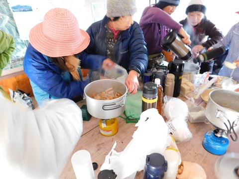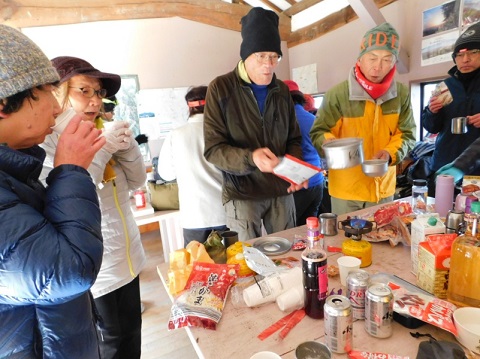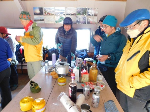 ![]() 休憩所にて新年恒例のプチ宴会の準備中 |