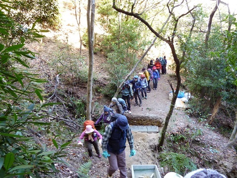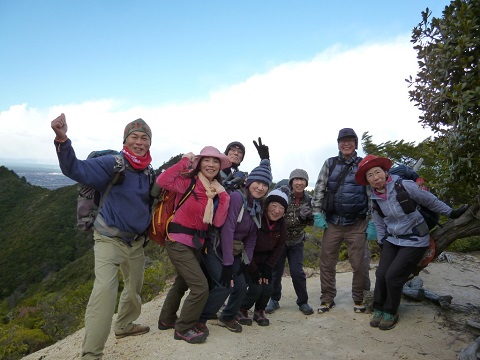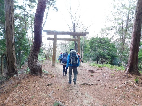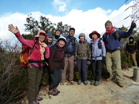 | 新年の初例会。友ヶ島に渡る計画でしたが、あいにく荒天(強風)のため汽船が欠航になり、急遽第2プランの「雨山」に行先を替えての新年山行となりました。正月休みの鈍った身体には丁度いいくらいのレベルかと思ってましたが、個人的には年末に風邪をこじらせた身体にはしんどかったです。風が強く、頂上ではプチ宴会は無理かなと思いましたが、雨山神社前に屋根付きの小屋があり、ありがたく利用させていただきました。豚汁、ぜんざい、手作りのハムや惣菜等を持ち寄り、美酒で新年にふさわしい華やかな宴に酔いしれました。 | |