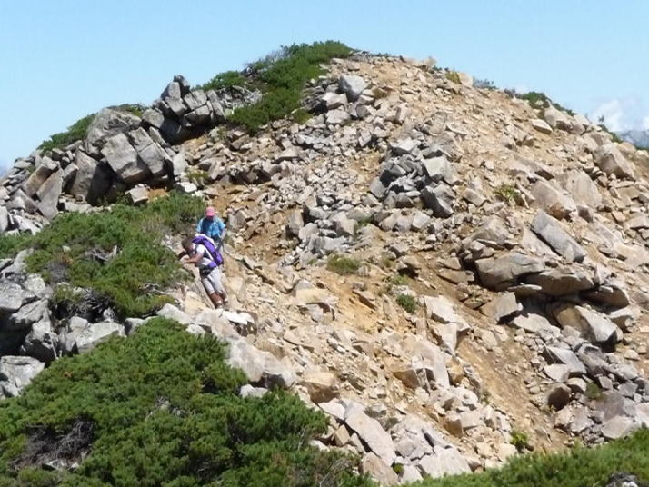 赤牛岳山頂が近づくと、こんなガレ場も出てくる