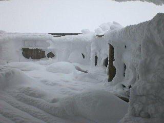| ゴンドラが休止していて、駐車場から歩き始める。今年は例年より雪が多いようで、その上、ガスっていてホワイトアウトの中、雪の壁を直登する。トレースがついていて、なんとか山頂まで行くことができた。山頂の小屋は殆ど雪に埋まり、美しいオブジェになっていた。下りは登りの半分の時間しかかからなかった。 | |