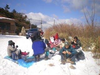 芦屋駅から登山口へ。途中阪急芦屋川駅でバスは満員、冬の六甲はやはり人気だ。つややかなヒメシャラの木が紺碧の空にはえる。おたふく山山頂は立木のない美しい高原、下には海が光り大阪の都心まで見渡せる。しばし下って本庄砂防ダムある谷を渡りふたたび登り詰めれば一軒茶屋。県道を歩くこと半時間で極楽茶屋に到着。たくさんの人がお弁当を開いている。ここでアイゼンを着け、百間滝は登山道本道からがけ沿いにかなり下ったところにある。一部はすでに融けて表面の氷だけが残っている。我々が見ている間にも氷の鱗が少しずつ剥落しつつあった。本道へ戻り七曲滝へ。沢沿いの道からアプローチしたが凍結した崖に阻まれて断念、あらためて高巻いてようやく到達。最盛期に比べれば少し氷も痩せていようが、繊細な美しさの一方で迫力も十分。有馬温泉へと下山。(T.F.記) |