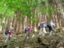 距離は短いながら、渓流、滝、岩場、鎖場など変化に富んだコース。例年以上に厳しい残暑の中、冷や汗を