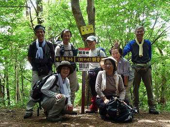 | 前日の午後7時の予報で、奈良南部の降水確率50,50でも絶対降らないと信じて出発、梅雨明けを思わせる、からりとした天気、観音平に着くと、あった、あった、紅ヤマシャクが、本当にあったんだ。可愛い姿と対照的に、その反対側斜面に忍び寄る外来種のジギタリスの群生、何も知らなければ、わあ、きれいというとこですが、正体を知ってしまったら、寒気が走る、引っこ抜きのお手伝いを少しして、観音峰に向かう。昼食後、法力峠に向かう、そして母公堂の後、洞川温泉で汗を流し満足の山行でした。 (M・U) | |