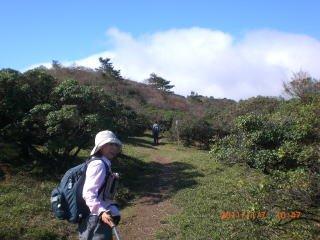 | 前日の雨の予備日だったため3名という寂しい山行になりましたが、ほとんど出会う人もなく、静かな山行となりました。紅葉は期待したほどでなく、今年は色づく前に茶色になって葉っぱが落ちてしまってます。上の方は馬酔木の大群落で行けども行けどもつづきます。そして山頂は草原になっていて360°パノラマです。眼下に伊勢湾の海、鎌が岳もそびえたっています。山行時間は4時間ほどでしたがかなりの急登でした。 | |