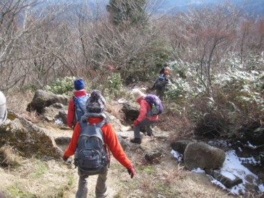 2,3日前からの冷え込みで、アイゼン覚悟の山行でした。登山口から早々に岩場の多い急坂、やがて