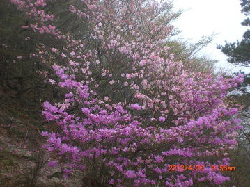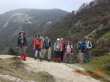 | 曇天で山並みは殆ど望めませんでしたが、最高の花々で私達を迎えてくれました、斜面に這う様にイワウチワの群生、色とりどりのアカヤシオ、そしてイワカガミ、キランソウ、ニシキゴロモ、バイカオウレン、ショウジョウバカマと岩ケ峰に至るコースは可憐な花の宝庫のようでした。 また、ザレ場、ヤセ尾根、岩場、と飽きさせない山行でした。 |