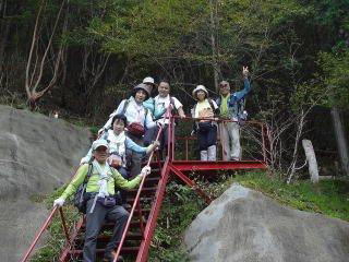 台風で、一週間延期での山行となりました。あまり一般には知られていない、しかしよく整備された、赤い鉄階段の目立つ荷揚げ口からのショートカットコースとなりました。