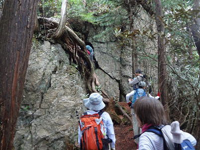 ![]() 女郎岩。足の置き場を探してよじ登る。 |