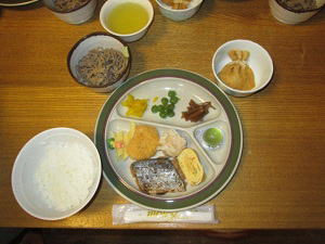 ![]() 7時間の山歩き。五竜山荘の夕食はうまい |