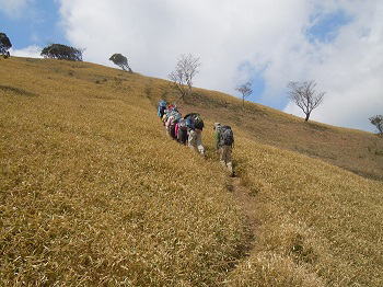 ![]() 見晴らしのよい笹原を登ります |