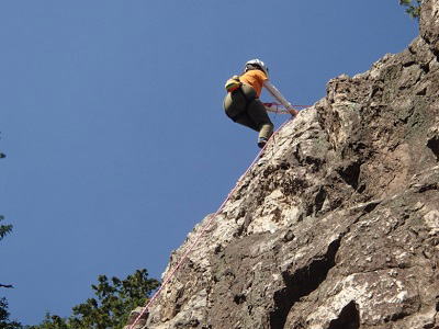 | ◇登山学校特別訓練山行 岩登りの2回目です。トップロープによる登り、懸垂下降、ロープの支点の作り方、ムーブ、などなど…覚えることがたくさんあります。ロープの結び一つ、体の体重を預ける訳でいい加減な結びをすると危険な事になります。皆、真剣に取り組んでました。リードクライミングは時間切れでおこなえず、次回へ持ち越しとなりました。今回学んだことを忘れないよう復習しておかねばなりません。(A.S.) | |
