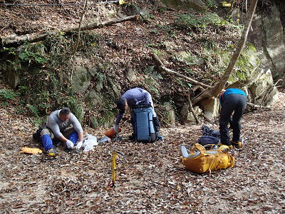 | ◇岩場・ガレ場歩き訓練は六甲山・地獄谷〜ピラーロックにて行われました。 地獄谷の岩場を12本爪のアイゼンを着け、ピッケルを持って登り、ピラーロックでは雪山に見立ててのあらゆる歩行練習をしました。が中々難しく、又の機会に再挑戦出来たらと思います。(M.I.) |