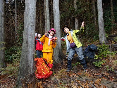 ![]() 雨中の杉林を進みます |