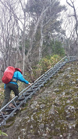 ![]() おなじみの長い金属梯子 この辺りからは岩場が増えてきます |