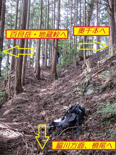 ![]() 捜索目標C: 奥千本〜百貝岳間から槙尾へ分岐する道端に設置 |