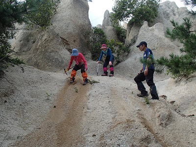 ![]() ピラー・ロックにてザレ場歩きの練習 |