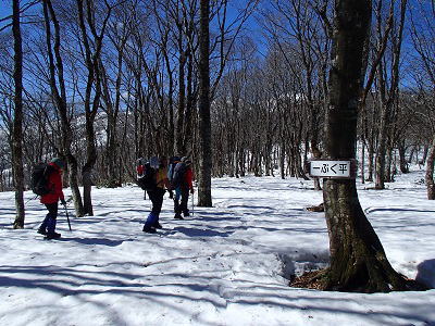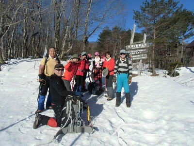 《概要》 県連主催「雪山講習会」補習山行。座学で学んだことの実践でアイゼンを装着せず歩行する。雪質は柔らかく気持ちよく登ることが出来た。下りでは、ピッケルを使い下山。V字歩行や山側加重等学んだ事を実践でき有意義な山行となった。(N.Has.) |