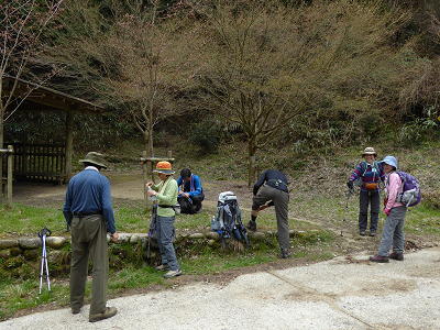 美しい桜のお出迎え、まだまだ元気な女性陣(17:15) |