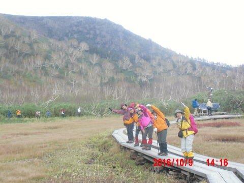 | 10月8日(土) 雨後曇り 【コースタイム】 起床(4:00)〜登山口P(6:10)〜登山口(6:45)〜ブナ平(7:30)〜荒管沢(8:30)〜笹平(10:15)〜山頂(11:00/11:16)〜笹平(11:45)〜荒管沢(13:23)〜ブナ平(14:15)〜登山口(15:05)〜登山口P(15:30) 出発は雨具着用。Pの横道に入り暫くは湿地帯、小沢を渡り小尾根にとりつくと、いきなりの急登。道の両側にブナ林が広がってくると、ブナ平だ。毛細血管のような根っこが歩きにくく往生する。やがて視界が開けて、荒菅(アラスゲ)沢に出る。ここからは対岸の尾根の登り返し、急登にあえぎ、両手を使ってのガレ場が続き、やっと明るく開けた笹平に到着。白く深〜いモヤ、体が飛ばされそうな強風の中、山頂へ。瞬時風雨がやむのを待って昼食。同じ道を帰り、無事をハイタッチで祝った。 10月9日(日) 雲り時々晴れ 【コースタイム】 栂池自然園入口(10:50)〜銀命水(11:45/12:15)〜展望湿原(12:45/12:55)〜風穴(14:15)〜栂池ヒュッテ(14:50) 午前中雨だったので予定を変更して栂池自然園を散策する。広大な湿原一面の草紅葉に続く木道を歩く。高層湿原の展望台からは白馬雪渓を間近に望むことができ、紅葉した木々の合間から街並みも見ることができた。 10月10日(月) 曇り後晴れ 霧雨の残るまだ夜の明けきらない中をスタートする。樹林帯を登り、雲海を突き抜けると天狗原の湿原に飛び出す。湿原の木道は薄氷が張っていてツルツル。さらに岩がゴロゴロの急な道を登ってハイマツの中の広い頂上に着いた。青空に白馬岳から鹿島槍まで続く稜線が見渡せて、最高の気分だった。 | |