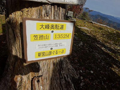 | ◆10月30日(日) 快晴 さぁ、今日は笠捨山をめざし地蔵岳、香精山を経由し21世紀の森まで歩く予定。笠捨山の急登、地蔵岳の鎖場、貝吹金剛付近の激下りと難所も多いルートなので慎重に歩む。しかし、天気も良好、すばらしき青空のもと南奥駆の魅力を満喫できた山行でした。 (A.Sug.) |