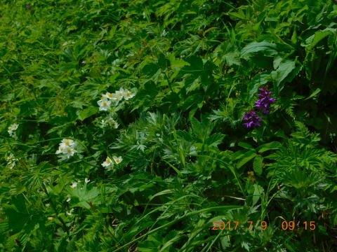 ![]() しばし立ち止まり、湿原に群生する花たちとの会話?? |