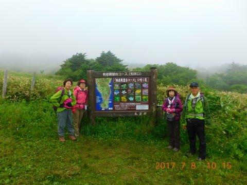 | 《礼文島 桃岩展望台コース》 2017年7月8日(土)曇り 【コースタイム】 ペンション「うーに」(9:00)〜北のカナリヤパーク(9:15/9:50)〜知床登山口(10:15)〜元地灯台(10:35)〜桃岩展望台(11:43/12:15)〜元地新トンルを通り地蔵岩(13:20)〜フェリーターミナル(13:15/16:25)〜利尻島鷲泊(17:10) 今日は花を愛でながらの山行。生憎ガスっていて展望はなし。でも可愛い花が沢山咲いていて礼文島の花を堪能した。 利尻島行のフェリーでは、利尻山の全容を見ることが出来、明日の山行に胸を躍らせた。 |