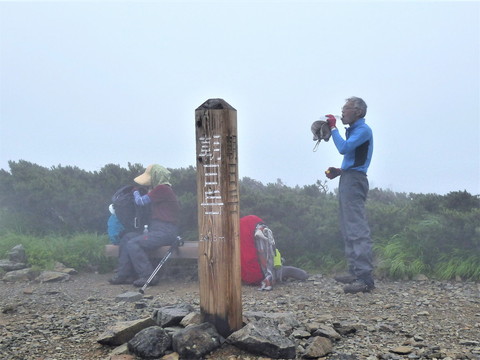 | 雨は降ってないもののガスの中、朝日小屋管理人の清水ゆかりさんの見送りを受けて出発。朝日岳山頂からの下降はやはりお花畑の中。春と夏、秋の花が同居していた。吹上のコルからは、残雪が多くアイゼンを何回か使用する。五輪の森を過ぎて尾根の稜線に出た辺りから咲いている花が見られる。急坂を下り切った所が白高地沢、立派な橋が架かっている。白高地沢からは樹林の中のUP,DOWNを繰り返して瀬戸川へ、以前は針金3本の渡しだったのが鉄筋の橋にたてかえられている。渡り終えると兵馬の平までの急坂の上り返し、ペースをゆっくりとって意外と簡単に登りきる。蓮華温泉で汗を流して現地解散、お疲れ様でした! |
