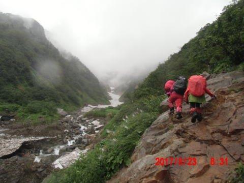 ![]() 雪渓の後半、橋を渡ります、水量がかなりあります |