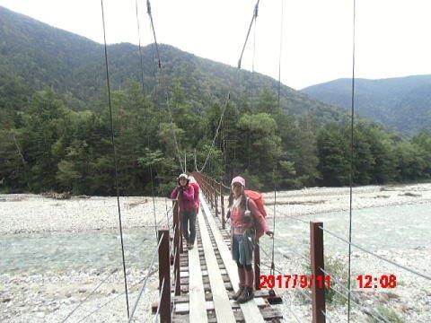 | 9月9日(土) 晴れ後曇り 佐味田川駅(6:00)~山荘錫杖(11:30/12:30)~しらかば平RW(12:45)~西穂高口RW(12:55/13:15)~西穂山荘(14:35) 9月10日(日) 晴れ後曇り 4時発、独標付近で薄明りとなる、10峰を越え西穂高岳到着、風があり、寒いが天気である、前方に間の岳が見える、慎重にアップダウンを繰り返し、間の岳へ、遥か後方に西穂高岳が見える、ここからが正念場である。 逆層スラブを登り、天狗の頭から下り、コルへ、さらに幾つかのピークを越え、遂にジャンダルが見えてきた、そして山頂からは、これからの核心部ロバの耳・馬の背が見え、そして、奥穂高岳が見える、ロバの耳の下りはかなり危険だ、馬の背を慎重に登って行くと、目の前が奥穂高岳である、遂に、到着、慎重に下って穂高岳山荘に無事到着、完走!! 9月11日(月) 晴れのち曇り 〖コースタイム〗奥穂高山荘(5:35)~涸沢ヒュッテ(7:25/7:50)~屏風のコル(8:50/9:00)~屏風の耳(9:25)~屏風のコル(9:45)~慶応尾根~新村橋~徳沢園(12:25)~上高地(14:20)~上高地(13:30)~タクシー~山荘錫杖(16:00) ザイテングラード下山し、2週間まで通行止めであったパノラマコースを下山に使った。 コルに荷物を置き耳までピストンをする。岩の多い慶応尾根コースを取り上高地へ。 |