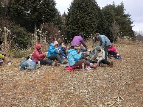 | 【 コースタイム】 JR王寺駅(8:31)〜阪急芦屋川駅(9:59)バス=東お多福山登山口(10:15)〜土樋割峠(11:00)〜雨ヶ峠(11:40)〜東お多福山(12:10昼食13:25)〜東お多福山登山口(14:20)バス14:36=阪急芦屋川駅(14:50) 東お多福山は、歩行時間が短くハイキングコースとして人気があり道標もしっかりしていて安心して登れる山なので楽しみにしていました。登山口から土樋割峠、雨ヶ峠と続く道は多少急登があり雪が残っていて滑りやすいところもありましたが、東お多福山山頂に着くと草原が広がっており、市街地や海を見下ろす展望が感動的でした。ここで、お酒や手製のお節で昼食時間をたっふりとって楽しみ、ゆっくり下山しました。好天に恵まれ、予定どおりの時間でのんびりした新春の山行を楽しむことができました。 |
