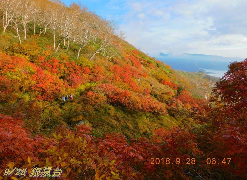 | 9月28日(金)大雪山系 銀泉台〜赤岳〜白雲岳〜黒岳 晴れ後曇り後霙 【コースタイム】赤岳登山口(6:18)〜赤岳(8:50)〜白雲岳(10:18)〜北海岳(12:10)〜黒岳(14:07)〜黒岳リフト場(15:13)〜黒岳RW駅(16:00) 登山口より登り始めると、山麓が紅葉している、雲海と青空・紅葉と素晴らしい景色である。赤岳よりは高低差があまりなく、白雲岳まで、生憎、旭岳は雲がかかっている。北海岳もあまり展望は良くない。黒岳山頂に到着、下山開始後、みぞれが降ってきて、小雨に変わる。やっとリフト場到着、雨も上がり、RWに乗り継ぎ、無事下山。 9月29日(土)羅臼岳 晴れ 【コースタイム】羅臼岳登山口(7:37)〜オホーツク展望(8:08)〜弥三吉水(9:06)〜銀冷水(10:05)〜羅臼平(11:08/52)〜羅臼岳(12:45/13:00)〜羅臼平(13:45)〜銀冷水(14:33)〜弥三吉水(15:30)〜オホーツク展望(16:00)〜羅臼岳登山口(16:25) 二時半に起床、層雲峡をあとにして四時間ひたすら車を飛ばし登山口に着く。台風が近づいているため、急遽予定を変更して、晴れの日の今日、羅臼岳に登ることになった。羅臼平では、羅臼岳の雄姿が見事に見ることができた。ハイマツの中を登っていくと、視界が開けオホーツク海が見える。頂上付近は岩だらけの登りでスリルが味わえる。 9月30日(日)摩周岳 曇り後小雨 【コースタイム】第一展望台登山口(7:25)〜摩周岳・西別岳分岐(9:25)〜摩周岳山頂(10:10)〜摩周岳・西別岳分岐(10:45/11:05)〜第一展望台登山口(12:45) // 〔観光〕硫黄山(13:40)〜オシンコシンの滝(15:15) 台風の影響で予定より1日早く摩周岳に登ることになった。予想は曇りで少し晴れ間も期待したが残念なことに「霧の摩周湖」の通り霧の中の登山になった。神秘的な雰囲気の中、白樺林の緩やかな登山道が続く。摩周岳直下の急登を除いては優しい登山道である。後日(10/3)、再度摩周湖を訪れた時は快晴で「透き通るような青い湖面」にただただ感動でした!! 10月3日(水)雌阿寒岳 晴れ 【コースタイム】雌阿寒岳温泉登山口(5:10)〜5合目(6:30)〜山頂下(7:40/8:00)〜雌阿寒岳登山口(10:00) 登山道はよく整備されていてテープ、ペインティングが短い間隔で示して道迷いもなく快調でした。青い空と真っ赤なナナカマドが彩りを添えて美しく始まった紅葉を眺めながら上りました。もう少しで山頂という所で強風のため下山しましたが硫黄の煙とドロ池がすぐ下に見え迫力満点の山頂付近の体験ができました。下山では雲海も晴れ広大な原生林が広がりオンネトーの素晴らしい眺めが感動でした。 |