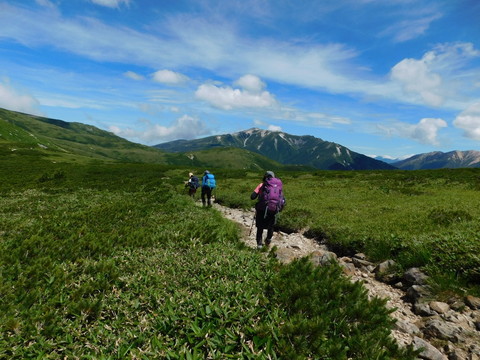 ![]() 北ノ俣岳を目指し、中俣乗越付近を行く |