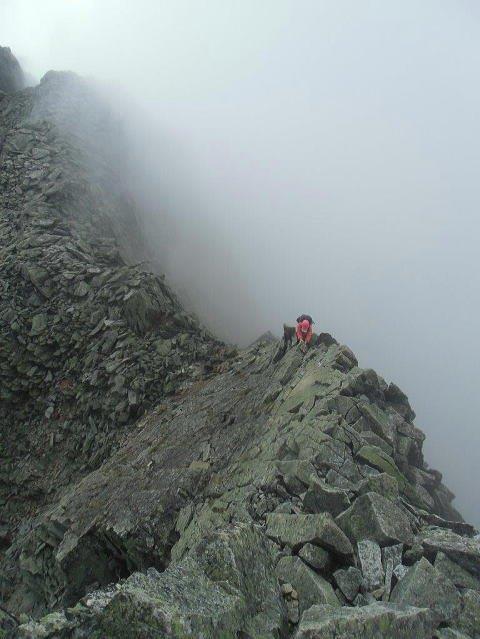 ![]() 両側がスッパリと切れ落ちた、馬の背からナイフリッジへ |