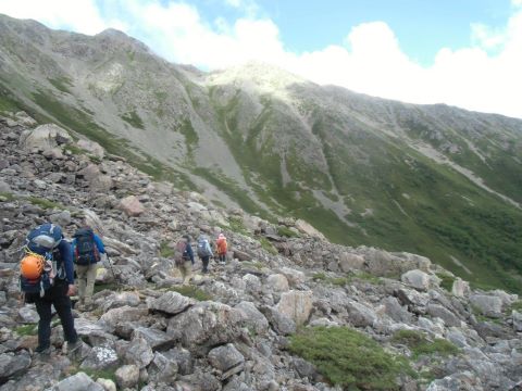 ![]() 念願の塩見岳に向かって |