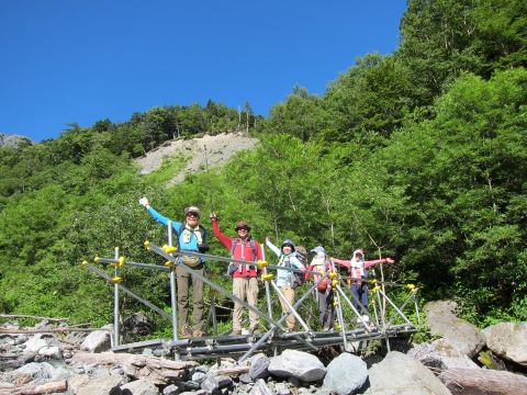 大樺沢の上流、空の青さと木々の緑が鮮やか |
