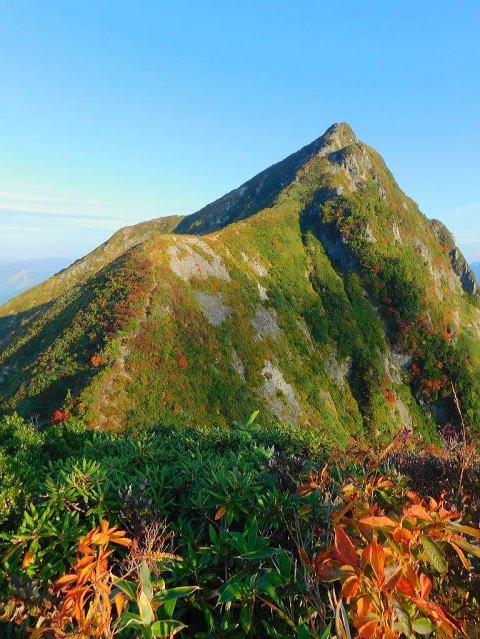 | 2日目も快晴、小屋より上越のマッターホルンと呼ばれる大源太山まで往復した。岩場、鎖場もあり変化に富んでいた。新潟側は益々紅葉が進んでいた。昨日登った山々と稜線を望むことができ感慨深かった。一ノ倉沢出合に着いた時はこれが有名な岩壁かと驚いた。長い距離の下りで疲労も頂点に達した。 |