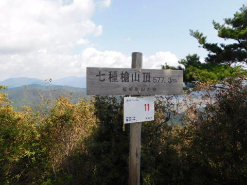 | 爽やかな秋風が吹く中、青少年野外活動センター奥の登山口から登る。登り初めから急登の続く中、奥山393.2mに到着。それからアップダウンと岩場の連続で、スリスと面白さを満喫しながら、七種槍に到着。再び激下りやアップダウンの連続。残念ながら時間の余裕がなく、七種山を断念して林道から下る。 |