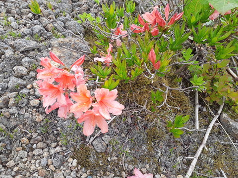 | 前日の天気予報で午後から雨や雷の予報が出たため、早朝の出発となった。登り始めは、小雨がばらつき心配したがすぐに止み、天候は回復した。ドンデン高原ロッジで見たオレンジ色の朝焼け、縦走途中の短い虹、金北山頂上の真っ青な空など空の変化を楽しみながら進んだ。また、昨日同様多くの花々に出合うことが出来た。特に、カタクリ・イワカガミ・シラネアオイの群生が多くの場所で迎えてくれ、その可憐な美しさに感動した。「花の百名山」を実感した山行だった。 |