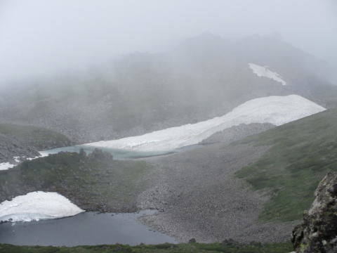 ![]() 雪渓、池塘、自然がおりなす造形 |