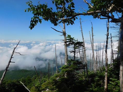 シラビソの一部立ち枯れになっています |