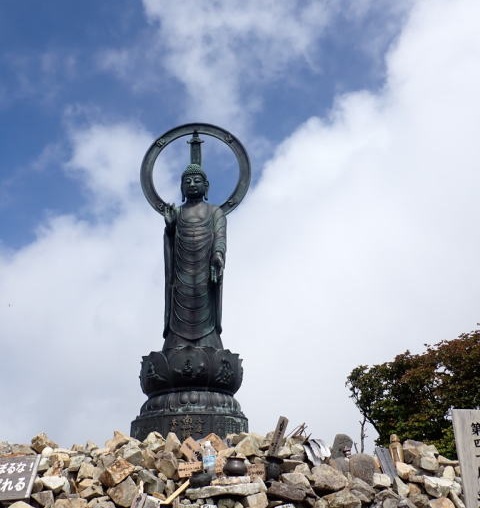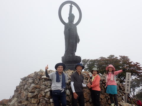 2年越しの剱岳が中止となり、急遽大峰の釈迦ヶ岳に・・・。 緩やかな大峰奥駈道をゆっくりと上る。「釈迦ヶ岳」は「釈迦入滅の地」「釈迦如来の住む他界」とみなされていて、数えきれないほど多くの修行者たちがここで祈りを捧げてきたそうです。晴れの予報が、ガスが多く孔雀岳まで行こうと思っていたが断念。途中からガスもきれて、釈迦ケ岳~大日岳がくっきりと見え癒された。 |