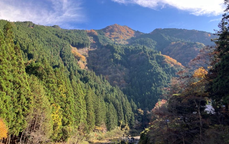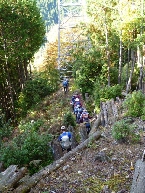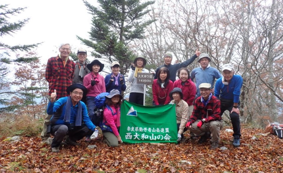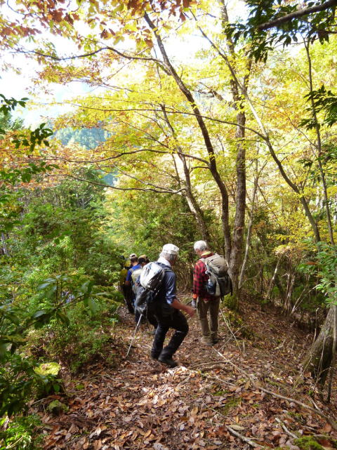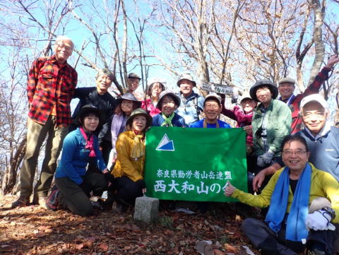 | 快晴のもと、和田発電所横の登山口より出発。朝焼けに映える紅葉が美しい。分岐までは歩きやすい急坂である川瀬峠からは、緩やかな尾根道である。木々の間から稲村ヶ岳をはじめ大峰の山々が展望できる。青空と紅葉のコントラストがきれいだ。頂上に着き、暖かい日差しを浴びながら昼食。歩行距離はかなりあったが(歩数約20000歩)紅葉を十分に堪能した山行であった。 |