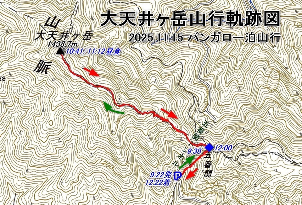 | 【コースタイム】案五番関登山口(9:20)~五番関(9:38)~大天井ヶ岳(10:41/11:12昼食)~五番関(12:01)~五番関登山口(12:22) | |