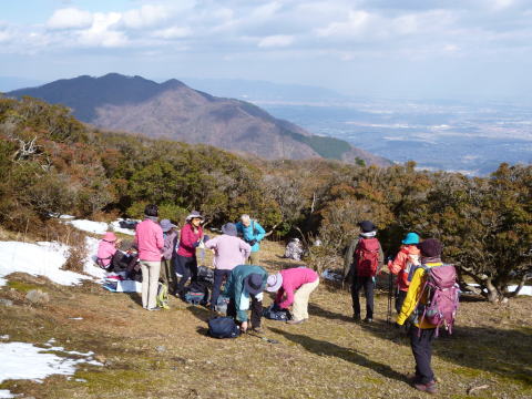 | 登りは井戸谷コースで。谷合を過ぎると、稜線まで延々と急な登り。振り返ると鈴鹿の市街や伊勢湾が美しい。山頂は風が強く寒いが、360度の絶景で心がなごむ。寒さに耐えながら昼食を短時間で済ますと、二本松コースで下山の途に。植樹林の間を下る単調な道であったが、無事に駐車場に帰還。すばらしい快晴に感謝の山行であった。