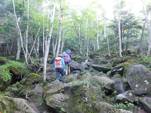 大きな石がゴロゴロした登山道です |