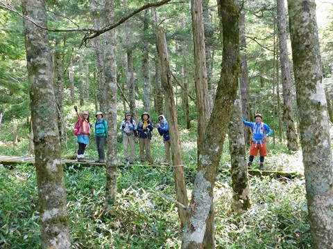 色とりどりの湿原の花々が咲き、ハンドブックを片手に名前を探しながら行くので中々前に進まなかった。のんびりと気持ちの良い湿原歩きを楽しむ。入笠山の山頂では雲がかかっていて展望が望めず残念だったが、下ってきて八ヶ岳の大展望を目の前にした時は感動した。 | |