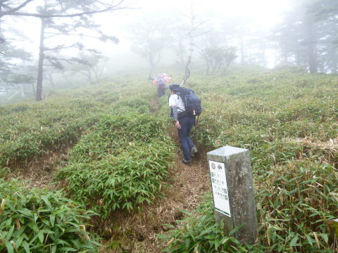 ![]() 孔雀岳はガスのため、あきらめて下山 |