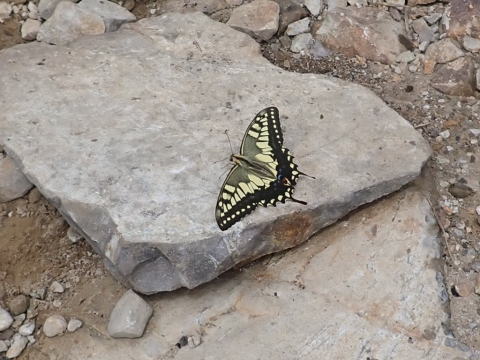 ![]() 山頂付近に群生して咲くトリカブトを乱舞していたキアゲハが、地面に止まってくれました |